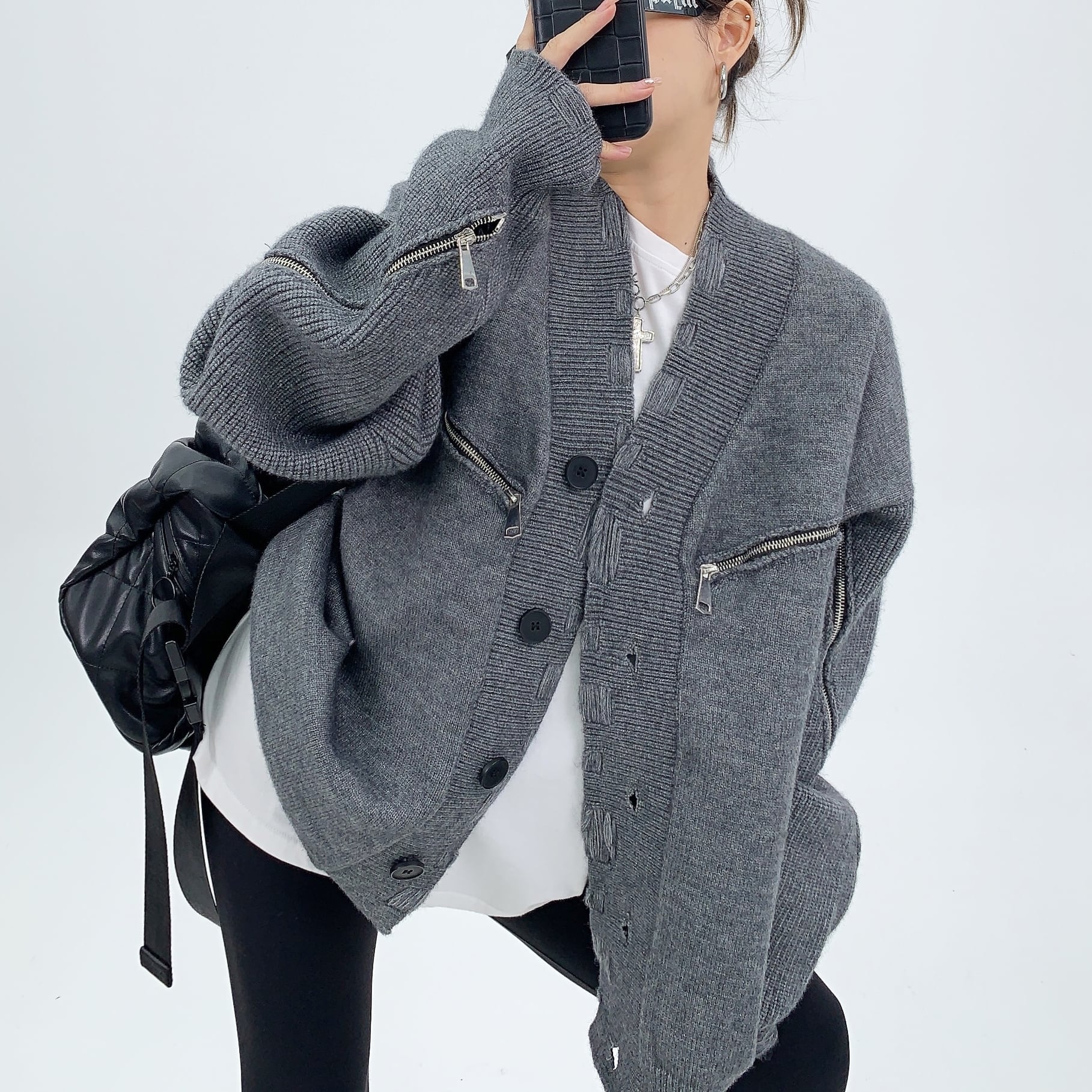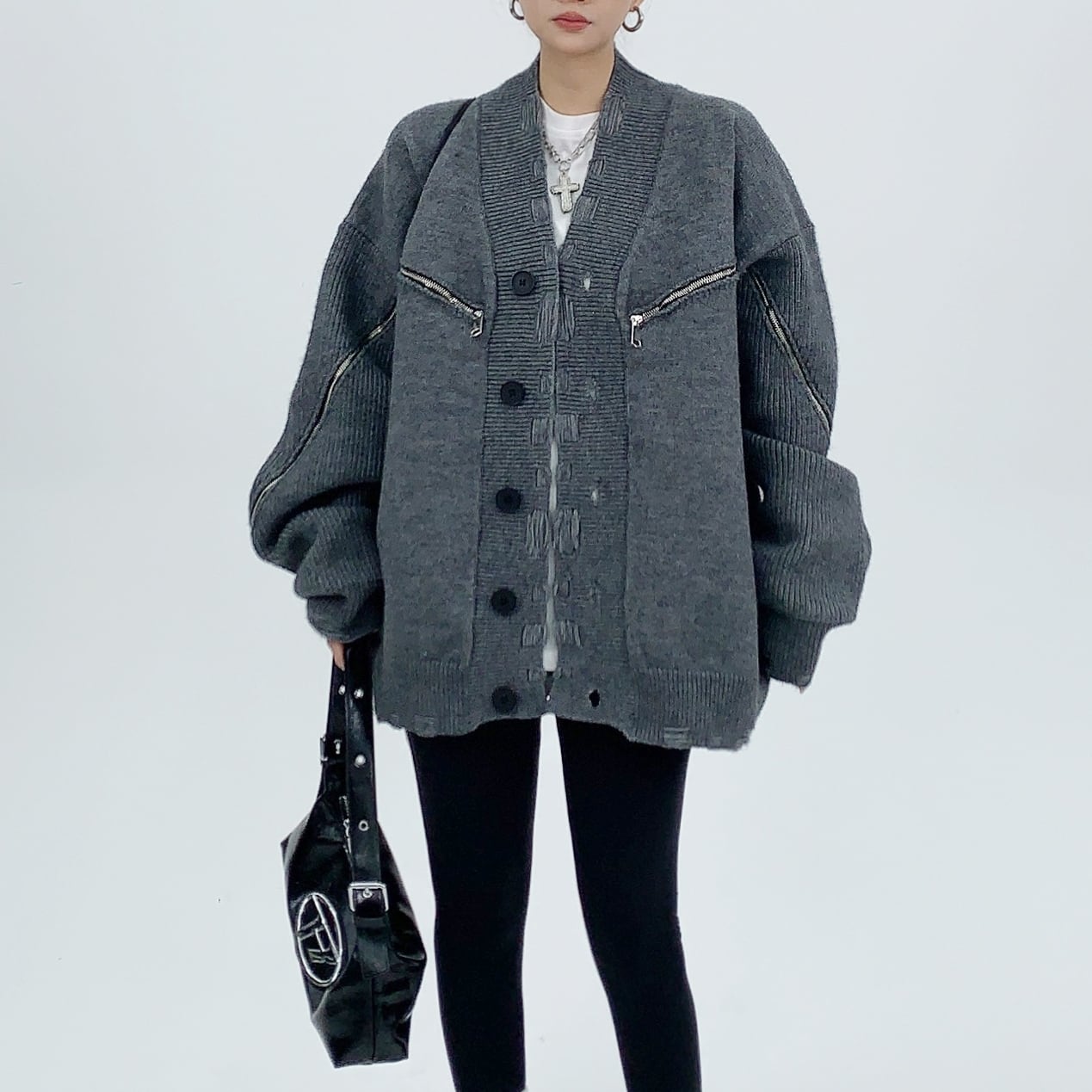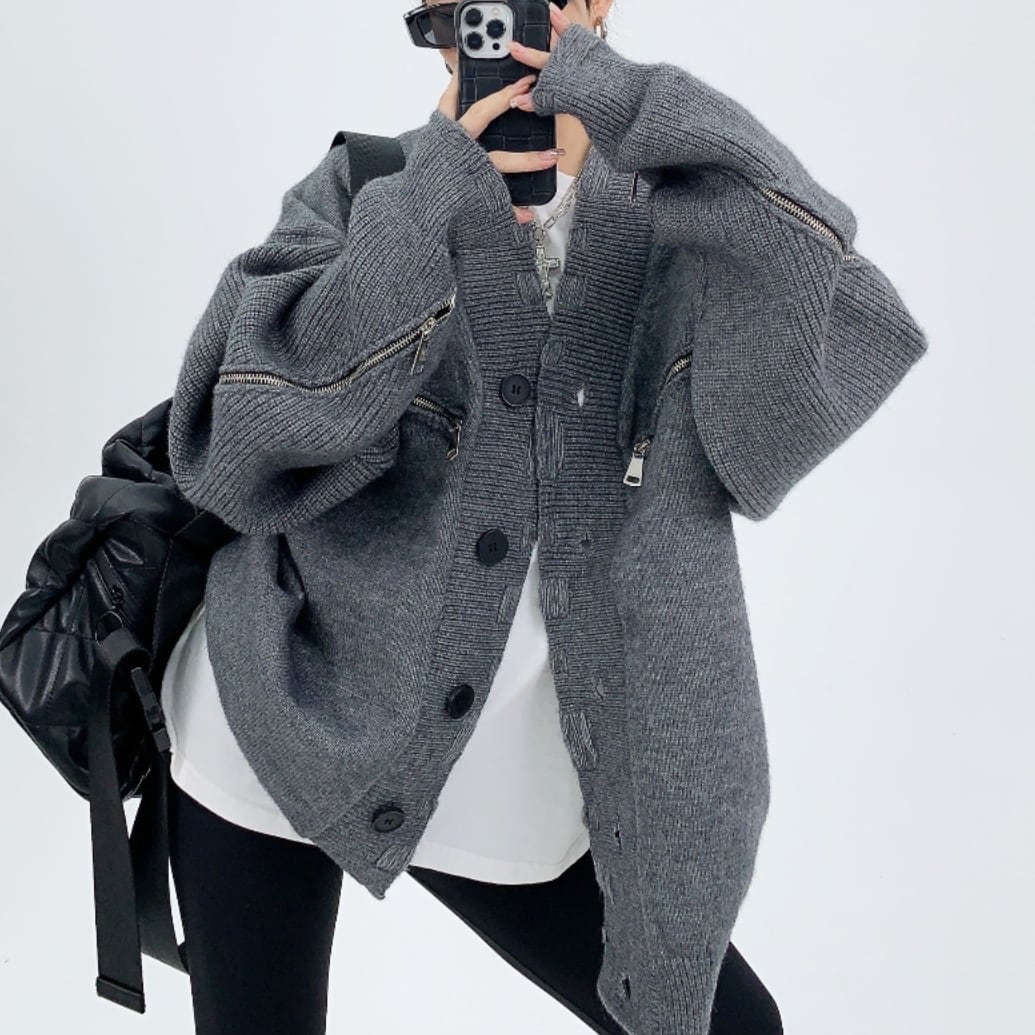 Distressed zipper design cardigan <2colors>1101