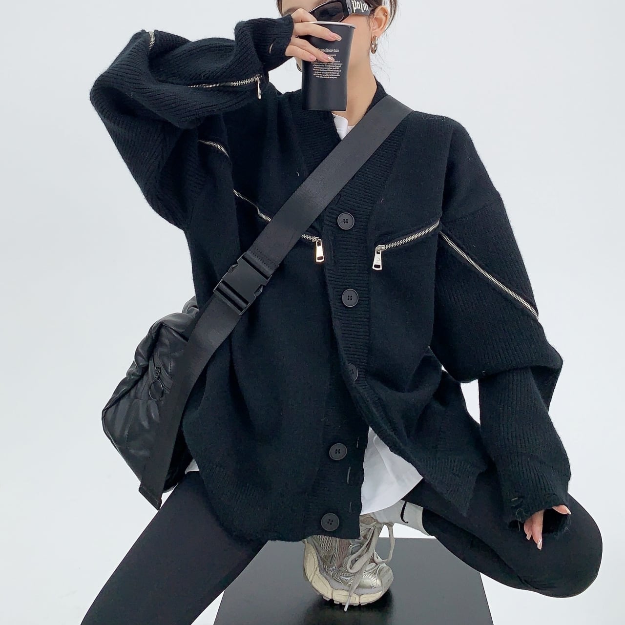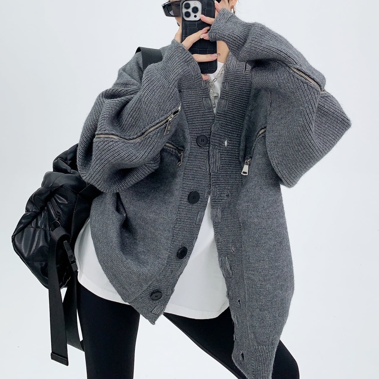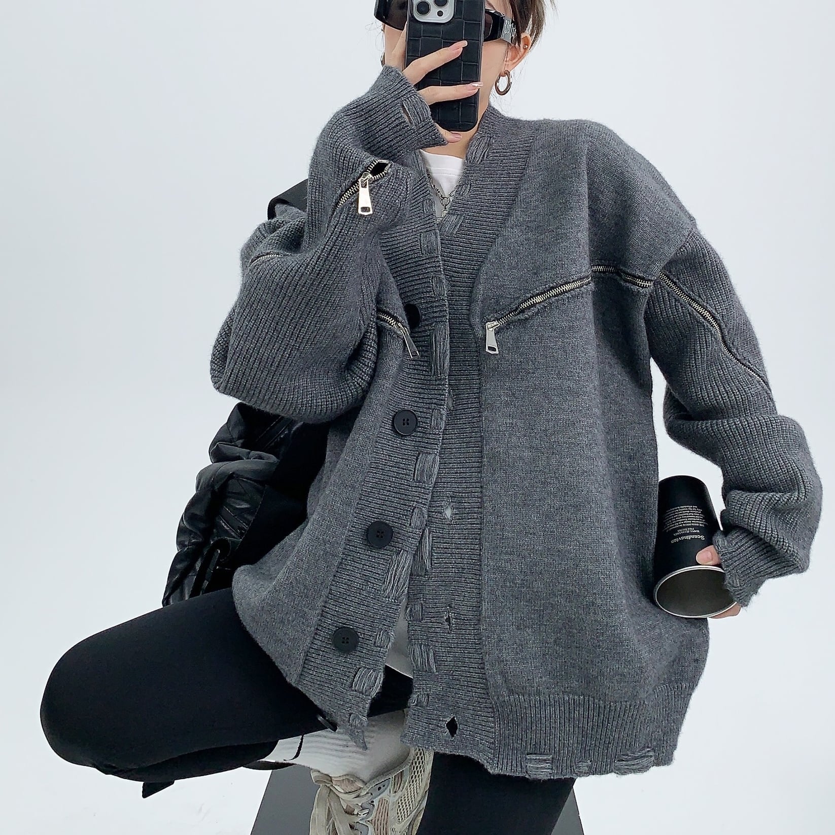 Distressed zipper design cardigan <2colors>1101